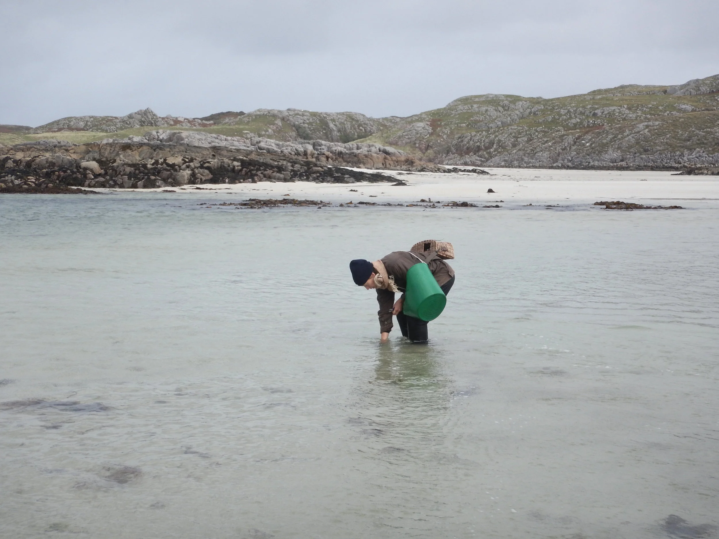 We explored the boundaries of the estate, mapped its wild and overgrown crevices, spent nights under the open sky, swam along the shores, dived into the depths, harvested and savored seaweed and shore weeds, herded sheep alongside the local farmer, fished and cooked on the rocks, measured the depth of peat fields, studied various lichen species, and observed the birds in the area. Closer to our new home, we constructed a guest house, initiated an organic vegetable garden, planted native broadleaf trees, and established a semi-public library.