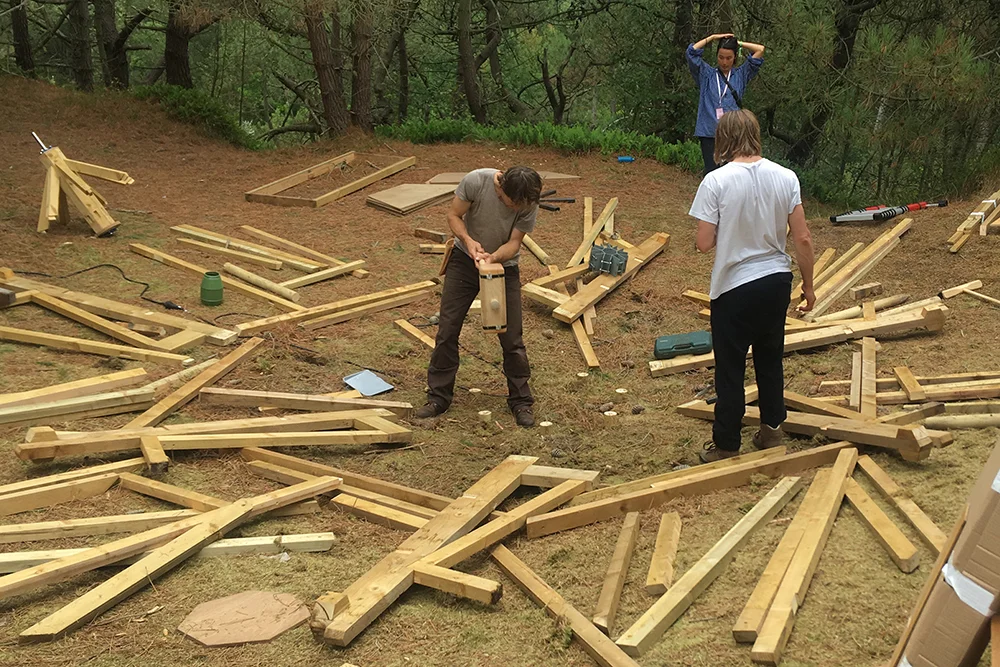 It all started with an invitation for an exhibition in The Netherlands. We had the opportunity to show work on one of the Dutch (wadden) Islands. The exhibition was held out in the open so we needed to create a shelter to show the work in. Instead of building a single use structure we decided to invest a bit more time and effort to make something that would last.